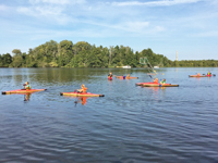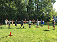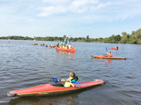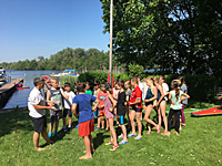 Täglich gab es einen lockeren WarmUp mit verschiedenen Übungen und kleinen Spielen. Nach diesem „Anschwitzen" ging die Hälfte der jeweiligen Klasse aufs Wasser, die andere Hälfte absolvierte einen Geschicklichkeits- und Tempoparcour auf der großen Wiese. Sowohl am zweiten als auch am dritten Tag wurden die Übungen dann etwas spannender und anspruchsvoller. Am Abschlusstag wurden beide Altersklassen fair gemischt und konnten zum einen in einem Kanupolo-Staffelrennen und zum anderen auf einem Landparcour zeigen, was sie in den letzten Tagen gelernt hatten. Zum Abschluss gab es leckere Grillwürste und jedes Kind erhielt eine Urkunde.