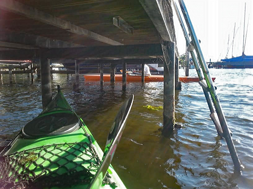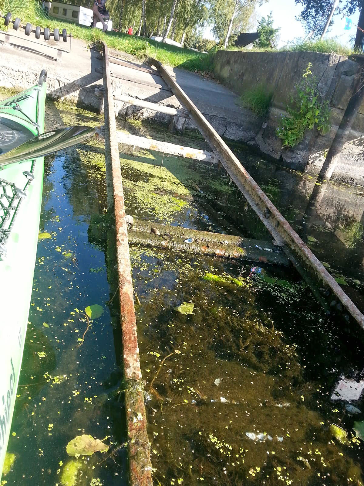 Der lange heiße Sommer 2018 hat auch unseren Paddlern zu schaffen gemacht und so mancher fragte sich, wie sie/er denn in das Boot ein- und wieder aussteigen könne. Extra zu diesem Zweck wurde ein "Steganbau" gefertigt. Aber niemand hat es je geschafft, auch Mal unter dem Steg zu fahren...