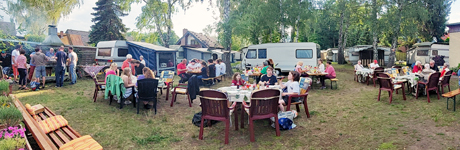 Gegen Abend versammelten sich alle Hungrigen um den Grill. Brutzeln, Plaudern, Kennenlernen, vom Salat des Nachbarn naschen und freie Getränke genießen war angesagt. Jonglage-Einlagen von Maik und etwas von früher von Günther wurde mit viel Beifall honoriert - Chapeau!