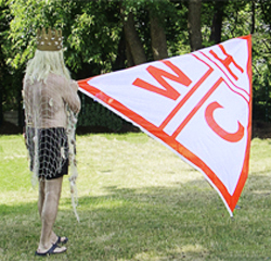 Anschließend landete Neptun mit seinen Helfern an und übergab dem Verein als erstes eine neue Vereinsfahne, bevor die Täuflinge aufgerufen wurden. Und wie auf Bestellung - zum Abschluss der Zeremonie grollte der Himmel und mit einem echten Donnerschlag kam der Regen.